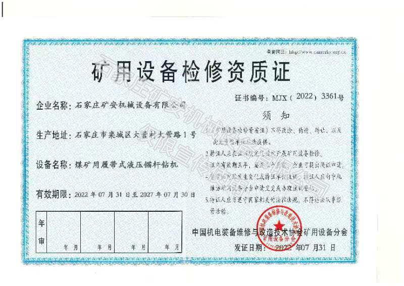 礦用設(shè)備檢修資質(zhì)證